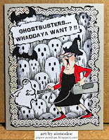 I love your fun Halloween card, Aimeslee! Such a host of cool ghosts in the background on top of that incredibly beautiful paper. Your Ghostbuster lady is coloured to perfection to stand out and the sentiment made me smile. Fabulous work!