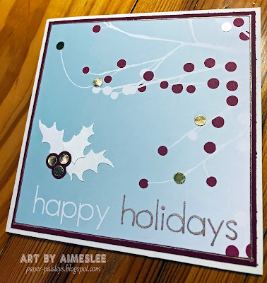 Hello and Well Wishes to All. Hard to believe it's the end of August already, yet here we are. I'm squeezing in one more Christmas card with a clean look requiring no coloring, as my shoulder decided to be sore again. 😒 I once again succumbed to the allure of designer paper scraps. I'd cut into the top section of a very old sheet of 12x12" Urban Lily paper awhile back and that left the bottom half which had Happy Holidays printed on it with some berry branches. I thought, oh that would make a good card front, so I put it in a shoebox lid. Well, I walked past it today and thought, let's do this and get her done. 😏